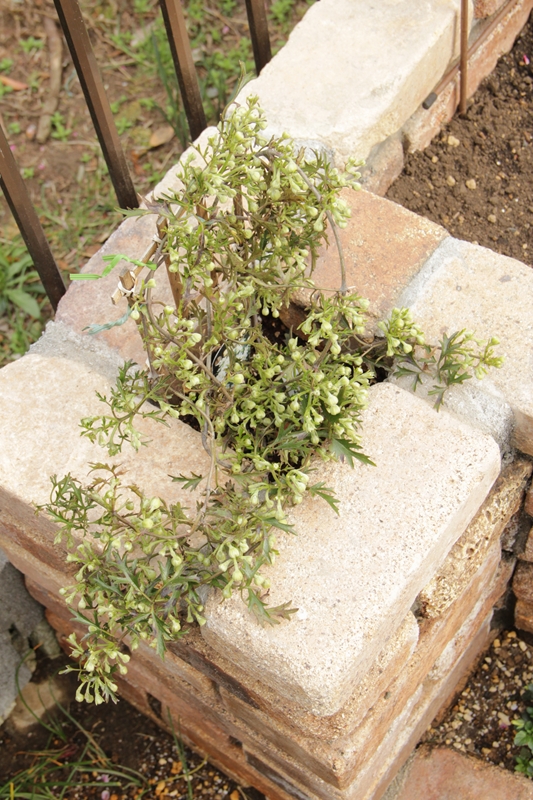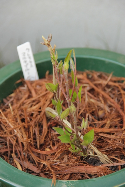 カザグルマの旧枝から新芽が出てたのがしなしなと枯れてしまい