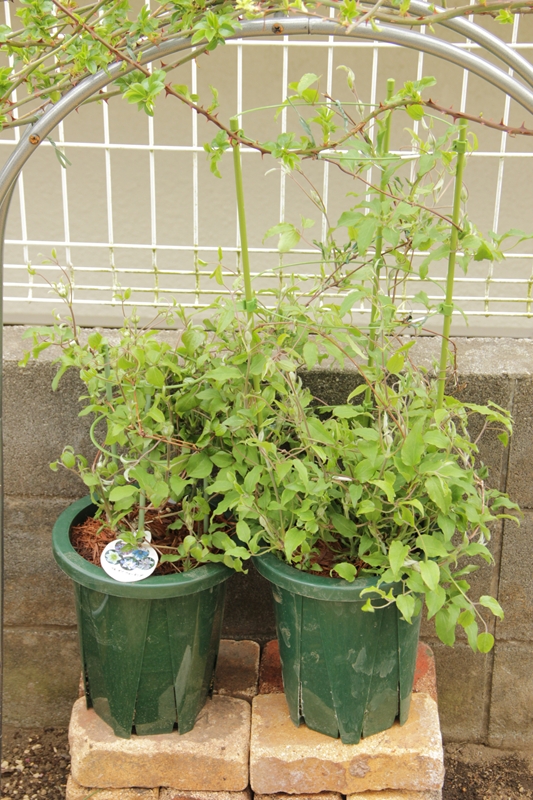 真ん中のクレマチス、何が咲くかなあ…それによってかなり