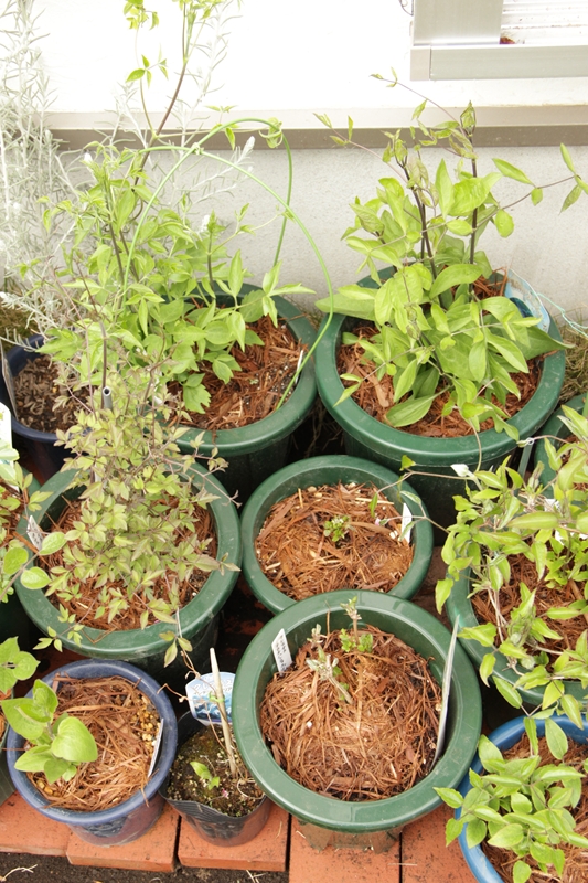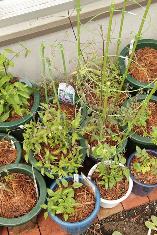風が強くて庭作業にならないのでクレマチスの芽吹き状態でも…