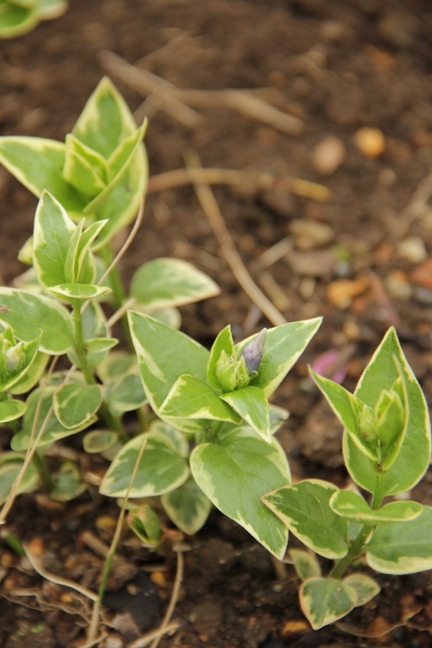 ツルニチニチソウに蕾。