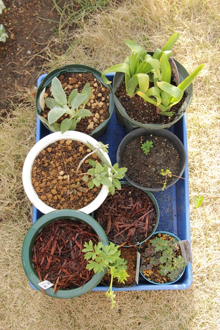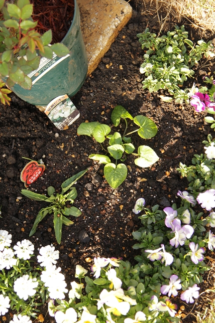 植える場所がない…ので無理やり寄せ植えられた苗たち。