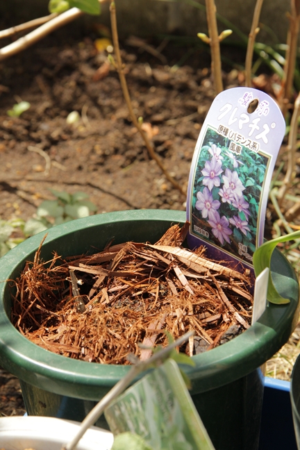 その底にも炭敷いてクレマチスの植わった鉢を入れ、