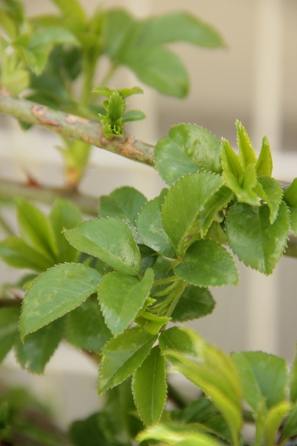 暴風でバラの新芽があちこち茶色くカリカリに枯れてしまったけど